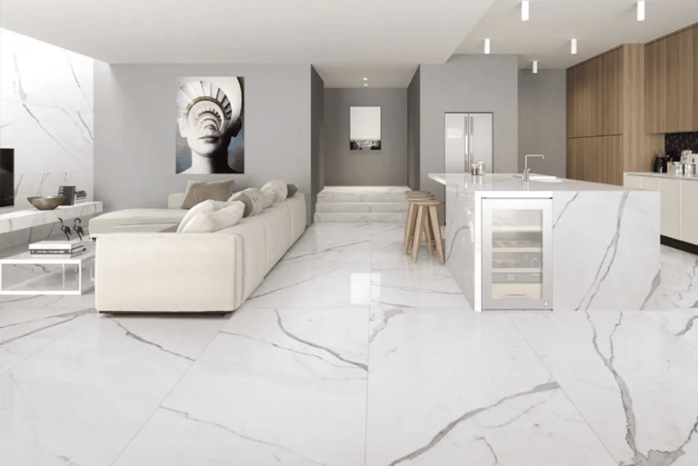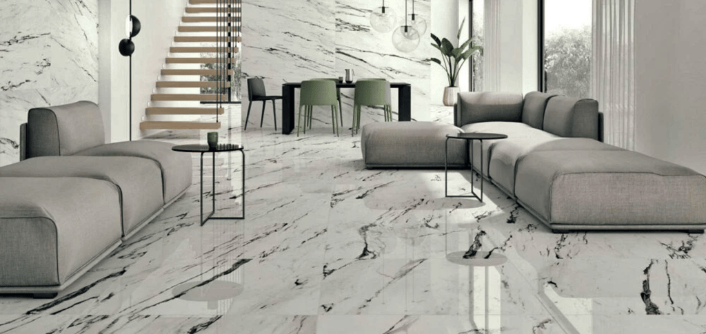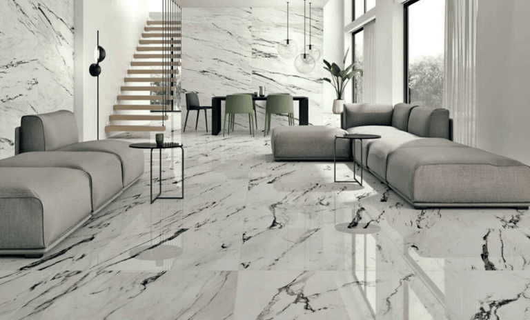 Lantai marmer sering dianggap sebagai simbol kemewahan dan keindahan. Marmer memiliki tekstur yang halus dan kilau yang indah. Meskipun lebih mahal dibandingkan dengan jenis lantai lainnya, lantai marmer mampu memberikan kesan yang elegan dan mewah pada ruangan.