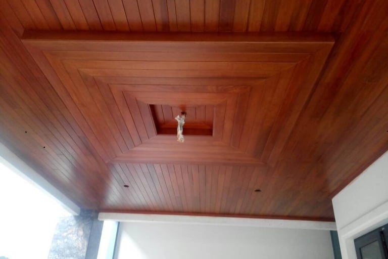 Plafon yang terbuat dari kayu adalah pilihan yang tepat untuk memberikan tampilan hangat dan alami pada ruangan. Kayu ini bisa diukir atau dipoles untuk menciptakan pola-pola yang menarik, yang akan menambah keindahan dan keunikan pada desain interior. Dengan menggunakan kayu sebagai bahan utama plafon, ruangan akan terasa lebih hangat dan nyaman, serta memberikan nuansa alami yang menyenangkan. Selain itu, kemampuan kayu untuk diukir atau dipoles memberikan fleksibilitas pada desain plafon, sehingga Anda dapat menciptakan pola-pola yang sesuai dengan selera dan kebutuhan Anda. Jadi, jika Anda ingin menghadirkan suasana yang hangat dan alami di dalam ruangan, plafon dari kayu adalah pilihan yang tepat.
