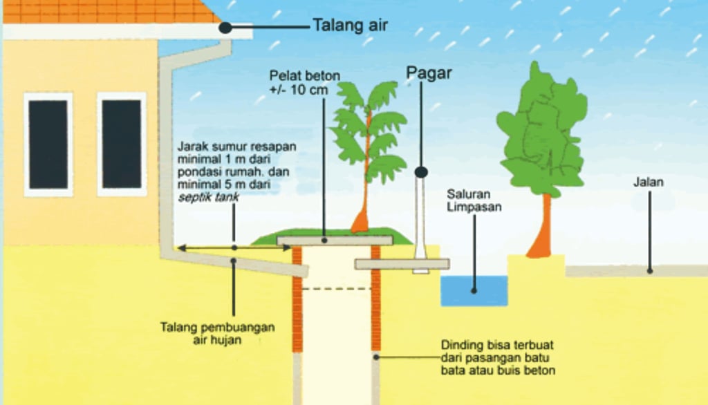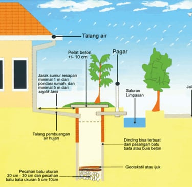 Sumur resapan adalah struktur atau lubang buatan yang dirancang untuk menampung dan meresapkan air hujan atau air limpasan ke dalam tanah. Dalam konteks pengelolaan air, sumur resapan berfungsi untuk mencegah terjadinya genangan air di permukaan tanah, sebuah masalah umum terutama di area perkotaan yang padat. Dengan memudahkan proses meresapnya air ke dalam tanah, sumur ini tidak hanya membantu memperbaiki sistem drainase, tetapi juga berkontribusi pada peningkatan jumlah air tanah.