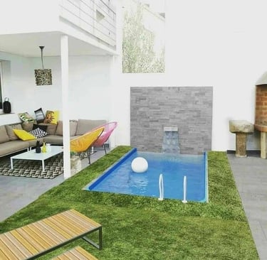 Jika Anda memiliki cukup ruang dan anggaran, membangun kolam renang kecil di belakang rumah bisa menjadi pilihan yang menarik. Kolam renang tidak hanya memberikan kesegaran dan relaksasi, tetapi juga menjadi pusat perhatian dalam desain ruang santai Anda. Anda bisa menambahkan kursi-kursi berjemur di sekitar kolam renang untuk bersantai sambil menikmati sinar matahari.