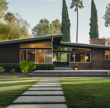 Banyak rumah bergaya Mid-Century Modern memiliki atap datar atau atap yang sedikit miring. Desain ini menekankan bentuk geometris dan kesederhanaan struktur, menciptakan garis yang lebih bersih dan tegas.