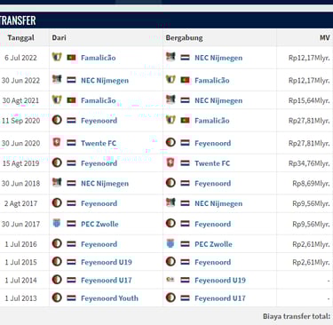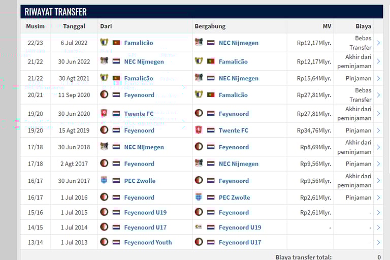 Calvin Verdonk adalah seorang bek kiri atau bek tengah yang karir profesionalnya dimulai pada tahun 2015 di Feyenord. Setelah berpindah-pindah, saat ini dia bermain untuk klub NEC Nijmegen. Untuk informasi lebih lanjut mengenai riwayat karir Calvin Verdonk, dapat dilihat di laman Transfermarkt.