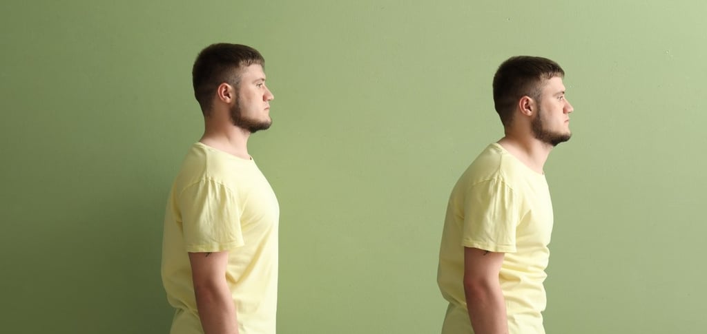 3. Kepala Tegak: Kepala sebaiknya dalam posisi tegak di atas leher dan punggung. Pastikan bahwa dagu sedikit tertarik ke dalam, bukan mendorong ke depan.